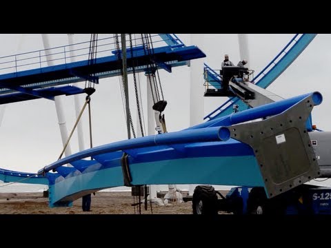 Endlich war es soweit – der lang erwartete Schienenschluss von Cedar Points neuester Thrill-Maschine GateKeeper wurde vollbracht. Etwa vier Monate dauerte der Aufbau des 1269 Meter langen Stahlkolosses, welcher bald über Cedar Points Eingang hinweg fliegen wird. Damit die Bahn auch pünktlich zum Saisonstart am 11. Mai eröffnet werden kann, fehlen neben der Fertigstellung von Station und weiteren kleinen Gestaltungsarbeiten die drei Züge des B&M Wing-Riders.